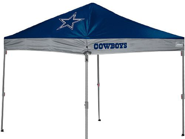 We have canopy covers available for rental, Texas Flag (9’x9′) and The Cowboys (10’x10′).